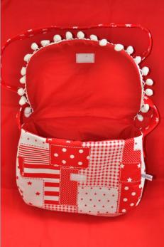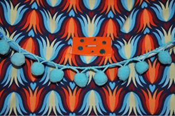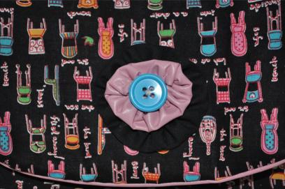 die Bommelborte an der Taschenklappe.